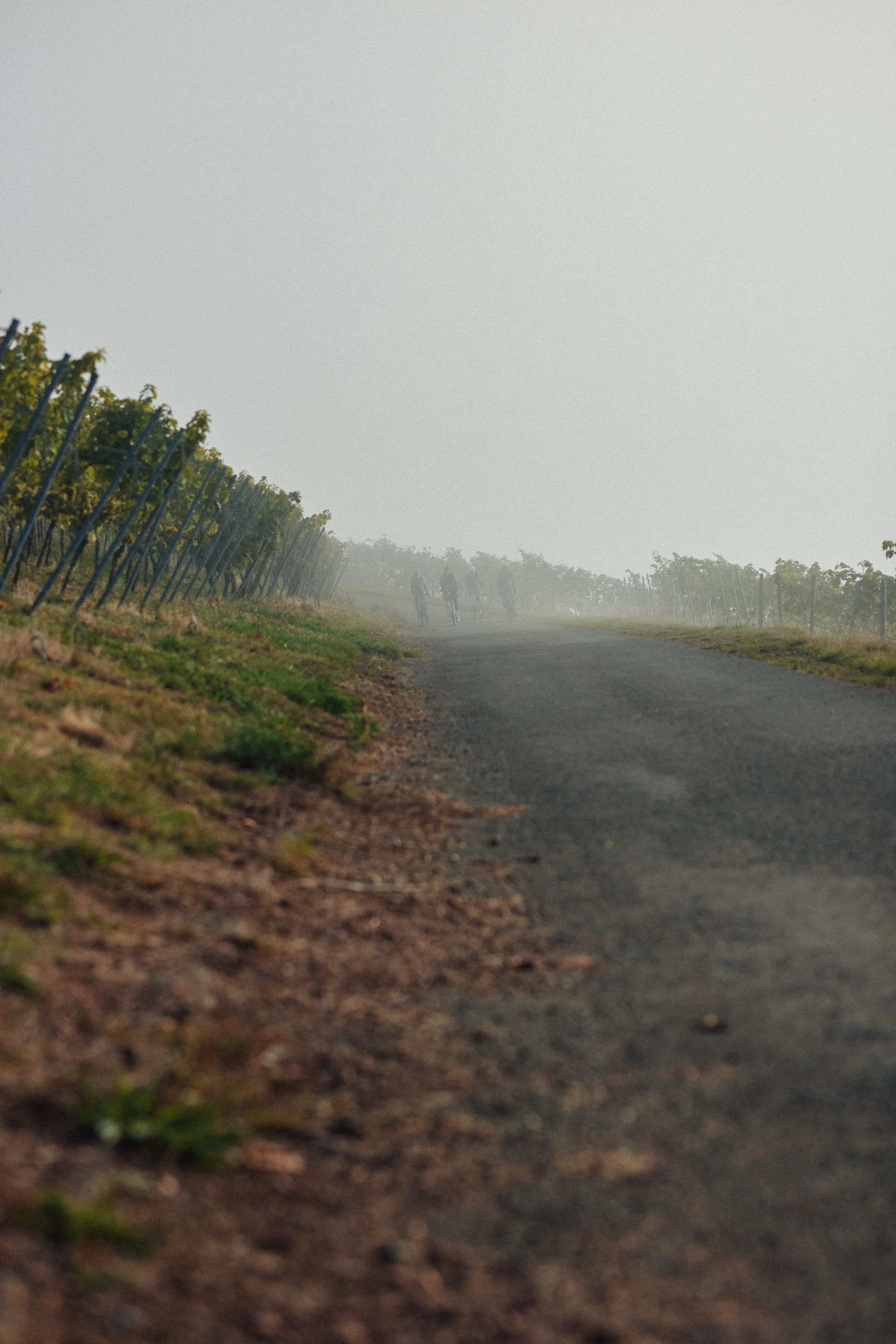 Finaltag. erstes Ziel das rhein-Nahe-Eck in bingen. um dorthin zukommen führten uns die ersten kilometer wieder durch den morgendlich kühlen & natürlich von anstiegen & abfahrten geprägten hunsrück – ein auf & ab. diese qualen sollten sich jedoch lohnen. an der mündung der nahe in den rhein in bingen angekommen, wartete ein einzigartiger ausblick auf uns. hier verweilten wir einige minuten. im zweistromland, wo drei unterschiedliche weinanbaugebiete direkt aneinander liegen. der rheingau auf der hessischen seite, rheinhessen & nahe auf der rheinland-pfälzischen seite des rheines. geprägt durch jahrmillionen verwitterung & einige eiszeiten, erstreckt sich das obere mittelrheintal entlang von hohen hügeln von bingen bis nach koblenz. dort warten, wer möchte, kilometer lange anstiege hinauf in die höhen von hunsrück oder rheingau. eine gegend um sich auszutoben oder flach entlang der flüsse zu gondeln. das stand heute aber nicht auf dem plan. erstmal eine kleine stärkung in bingen. kaffee & kleine snacks brachten die nötige energie zurück. durch die weinberge über bingen ging es danach in richtung münster-sarmsheim, wo das vdp.weingut kruger-rumpf seinen sitz hat. georg & familie erwartet uns schon ganz herzlich auf dem hof. als welcome-drink gab es zwei unterschiedliche weine. einen kabi & eine spätlese. 20 jahre gereift, aber fresh als wären sie erst vor kruzem auf die flasche gekommen. was ein auftakt! im anschluss wartete eine super informative kellerführung auf uns. fall ist die zeit der lese, der kellerarbeit. es gab so viel zu riechen, hören & zu lernen. einfach genial. voller neuer eindrücke sattelten wir erneut unsere pferde & es ging von der untern, entlang der mittleren zurück nach weiler an der oberen nahe. die letzten kilometer machten wir nochmal richtig druck in der ebene, denn wir wussten, dass abends die weinprobe auf uns wartete. doppelt motivation. zurück in der unterkunft fielen wir uns in die arme & feierten schon bei dem ein oder anderen bier & kaffee die vergangenen drei fahrten. keine stürze, keiner eingebrochen, einfach purer stolz. zum abendessen wieder zusammengefunden & mit unserem gast des abends, phillip rumpf, wartete eine starke weinprobe auf uns. entsprechend den gerichten ging es von gutsweinen von kruger-rumpf bis zu den GG’s in der klassifikation nach oben. purer genuss, pure freude. mit einigen zusätzlichen flaschen feierten wir bis tief in die nacht die letzten tag & natürlich auch uns. cincin!