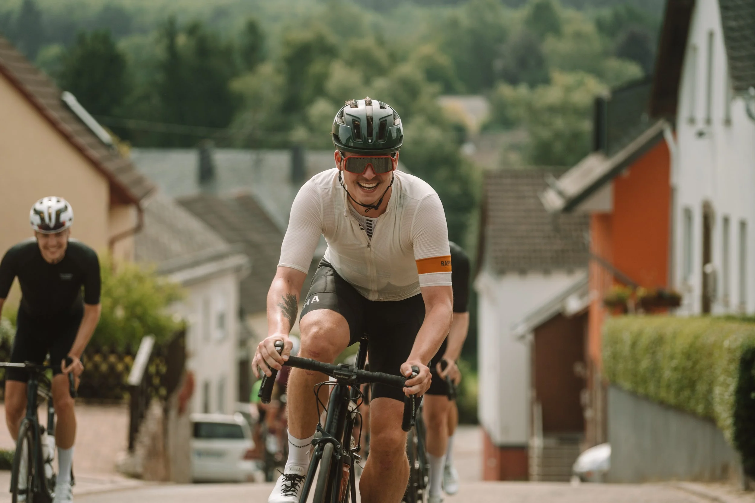 TAG ZWEI. THE longest day. nach einem reichhaltigen frühstück starteten wir erneut bei besten wetterkonditionen in richtung rheingau. zuerst ging es von stein-bockenheim aus entlang rheinhessischer ortschaften in richtung nahe. ab dort begleitete uns auch unser besenwagen samt fotografin lina. ab bretzenheim an der nahe führte die strecke leicht ansteigend die ersten 20km richtung rheinböllen im hunsrück. kaum befahrene strassen und die dichten wälder schützen vor der schon hochstehenden sonne. kurz vor rheinböllen bogen wir rechts in richtung dichtelbach ab, die erste rampe des tages STAND AN, ehe es auf direkten wege und einer schnellen abfahrt runter zum rhein ging.