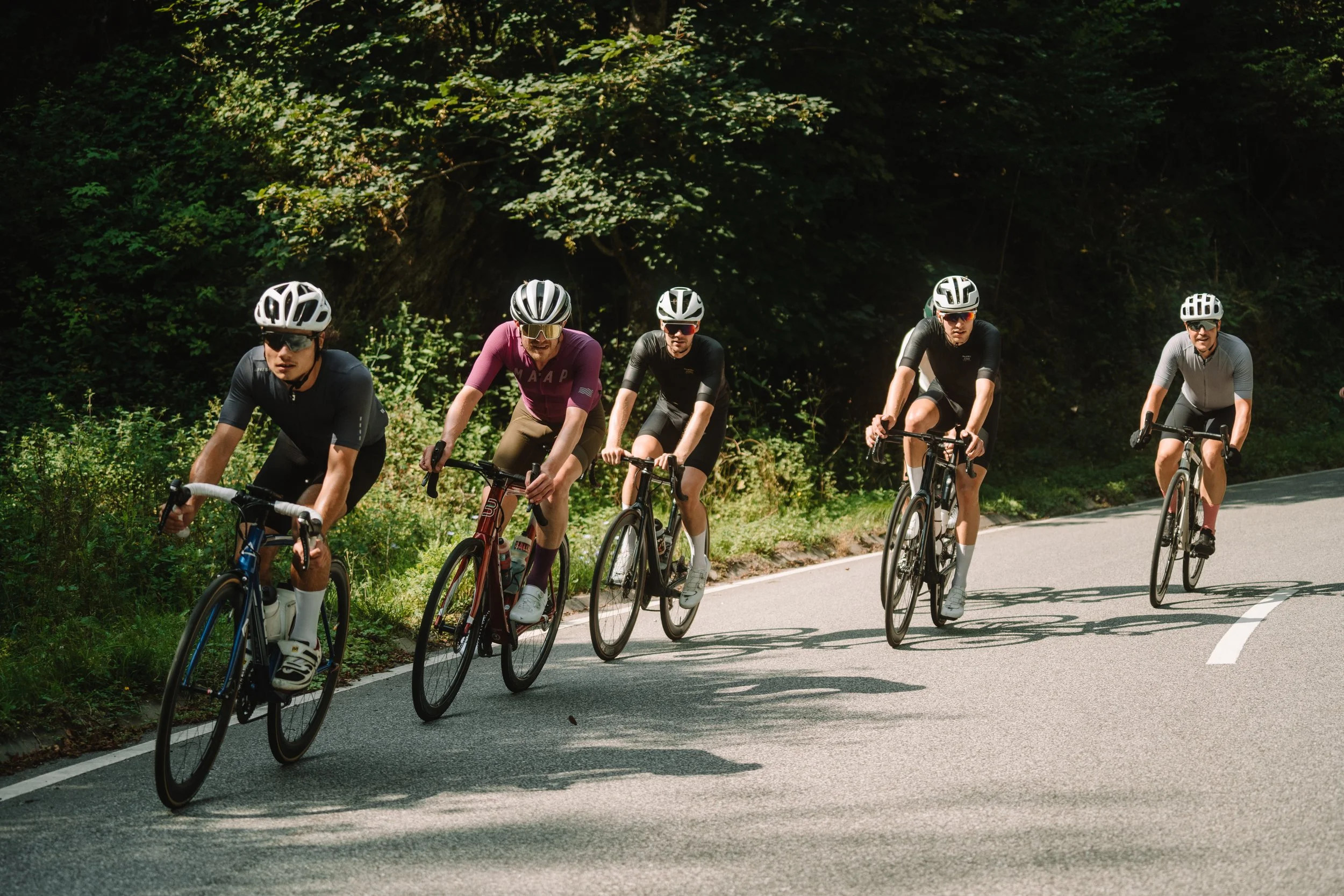 kurz nach obermoschel erwartet uns der fieseste anstieg des tages. ca. 3 kilometer bei 18% mit einigen rampen hoch nach lettweiler. aufgefädelt wie eine perlenkette trudelten WIR nach und nach am versorgungswagen ein. kalte coke & etwas zur stärkung wARTETEN AUF UNS. dies war bei temperaturen um die 30°C auch bitter nötig. von dort aus ging es über kleine weinbergswege entlang der steilhänge an der nahe direkt zum vdp.weingut dr. crusius nach traisen. rebecca, die kommende generation des vdp.weingut, empfing uns herzlich im innenhof des betriebs. fahrräder abstellen & direkt in den kühlen keller war angesagt, bisschen verschnaufen & die kerntemperatur runterbekommen. rebecca brachte uns im herzstück des weinguts direkt ihre philosophie zum weinbau herüber. was macht das weingut besonders? was ist so einzigartig am weinanbaugebiet nahe & welche chancen & risiken der klimawandel mit sich bringt. im verkostungsraum angekommen gab es einen schön gekühlten, leichten kabi & das entsprechende aus, in welchem der kabi verarbeitet war – erfrischend leicht & nicht zu viel alkohol, ideal für die restliche fahrt zurück in die unterkunft.