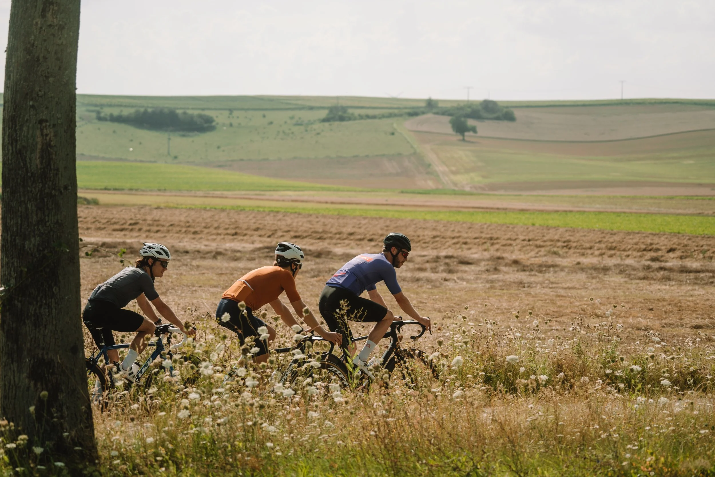 TAG DREI. Pro ahead. zum frühstück erwartet uns diesmal eine kleine überraschung. unser freund rick zabel war samt leonie & dem kleinen oskar angereist. ab aufs zimmer, stärkung rein & los gings. rick begleitete uns am finalen tag. rheinhessen pur. über schmale landwirtschaftswege, betonplatten, fiesen rampen & anstiegen ging es bei abermals besten wetter durch die rheinhessische toskana. auf dem kloppberg bei hochborn angekommen, kam uns die idee, schnell noch einen spontanen abstecher bei unseren freunden vom weingut dreissigacker in bechtheim einzulegen. alle waren begeistert, da auch dort die möglichkeit zum auffüllen der bidons gegeben war. ein kurzer anruf bei unserem freund tim (aussenbetriebsleiter bei 30acker) genügte & schon ging es auf direktem wege nach bechtheim. auf dem weingut angekommen lies tim nicht lange auf sich warten, standesgemäss fuhr er mit dem traktor vor & öffnete uns die heiligen hallen.